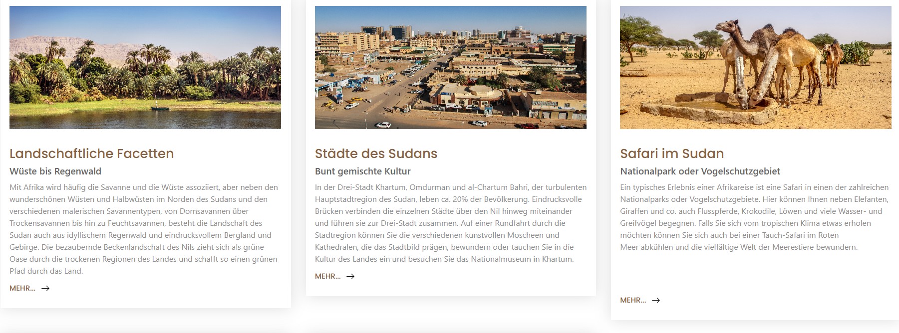 In April 2025 haben wir das Layout der Internetseite www.die-sudanreise.de auf ein neues Format geändert. Das neue Layout ist auf Handy besser lesbar. Wenn gleich viele unserer Kunden die Webseite immer noch am PC lesen, nimmt der Anteil der Handyleser langsam und stetig zu.